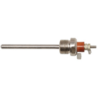 Датчик ПЭЛЗ для неразборных конструкций свечного типа. Используется для установки в емкости с внешней стороны стенки. Для установки необходимы отверстие с резьбой или ввареная резьбовая бобышка. Длина рабочей части 77 мм., резьба 5 мм. Резьба штуцера М20. Датчик рассчитан на рабочее давление до 25 кгс/см2 и температуру среды до 200°С.