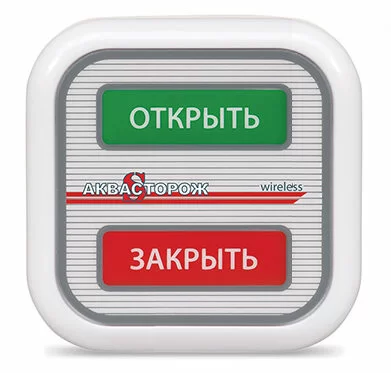 Радиокнопка – пульт дистанционного управления системой «Аквасторож». Позволяет дистанционно включать и отключать водоснабжение квартиры или дома. Устанавливается в любом месте, например, на стене у входной двери или на первом этаже частного дома.